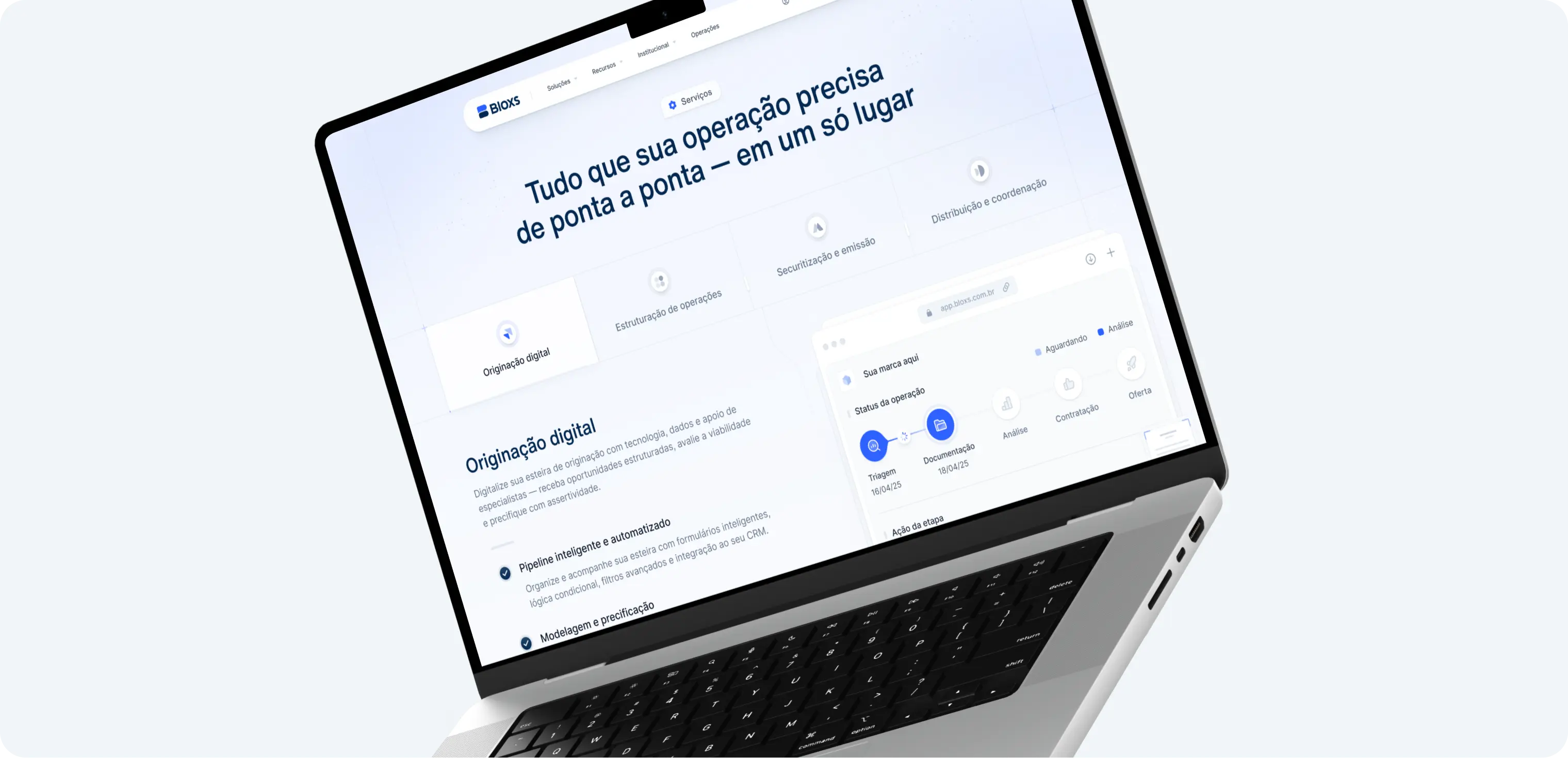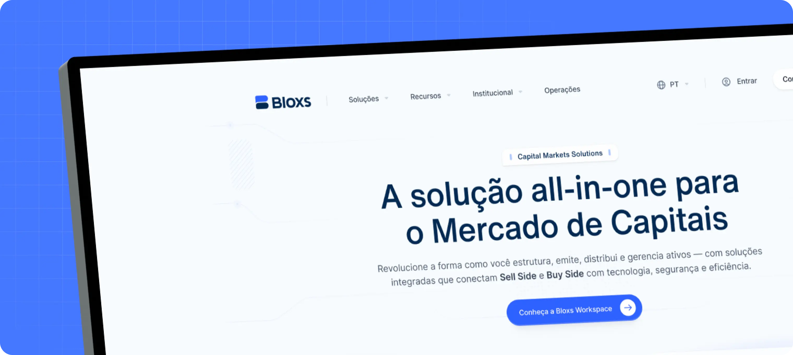 Com sete anos de atuação no Mercado de Capitais, a Bloxs lidera a transformação ao integrar tecnologia, digitalização e novas soluções que ampliam o acesso e a eficiência no setor. A plataforma conecta investidores institucionais e emissores, permitindo estruturar operações com segurança, gerenciar documentos e acessar informações estratégicas para decisões mais ágeis. No entanto, sua presença digital já não refletia com precisão a maturidade da operação, tornando necessário alinhar marca, discurso e experiência a um novo nível de clareza e sofisticação para o público B2B.