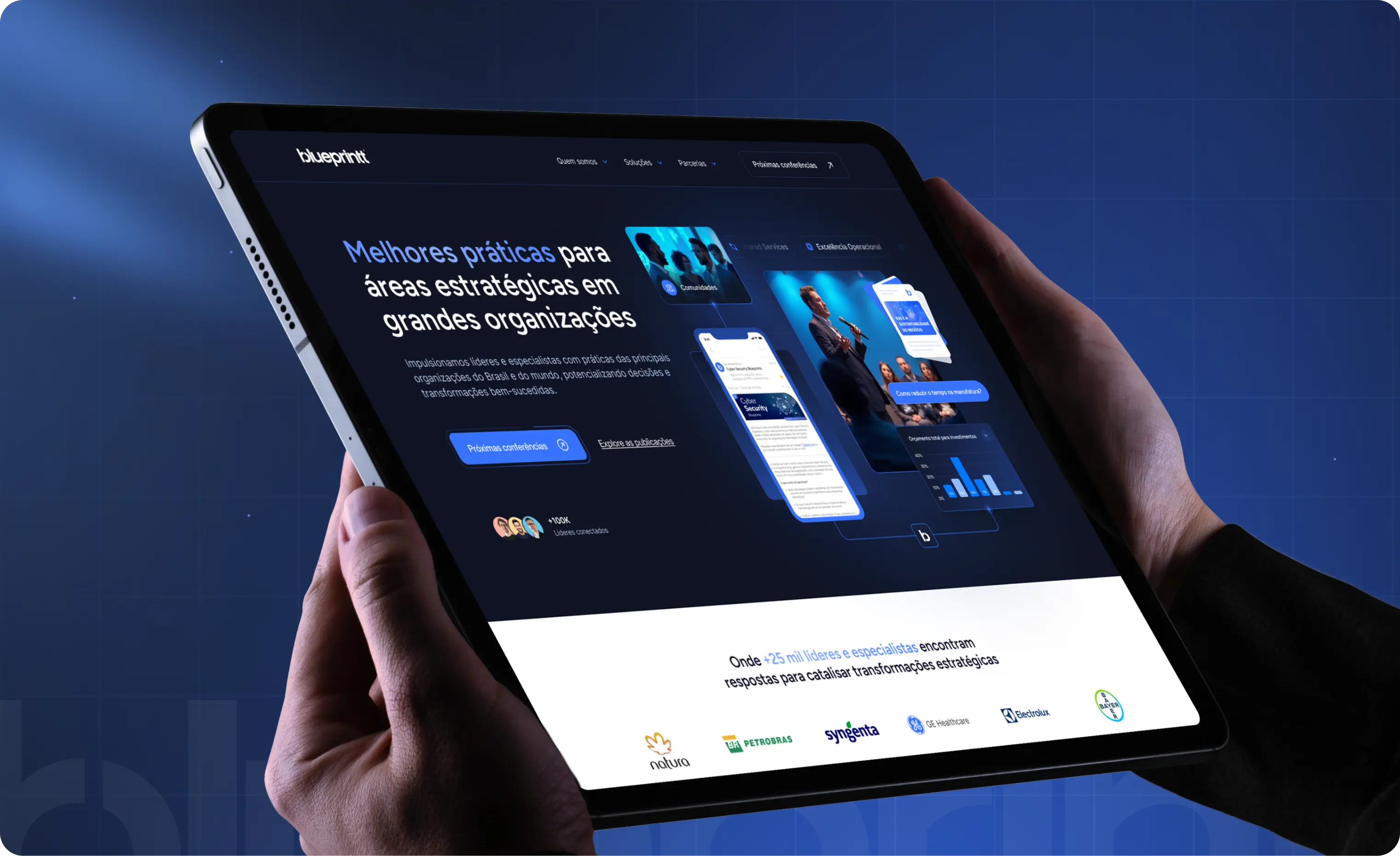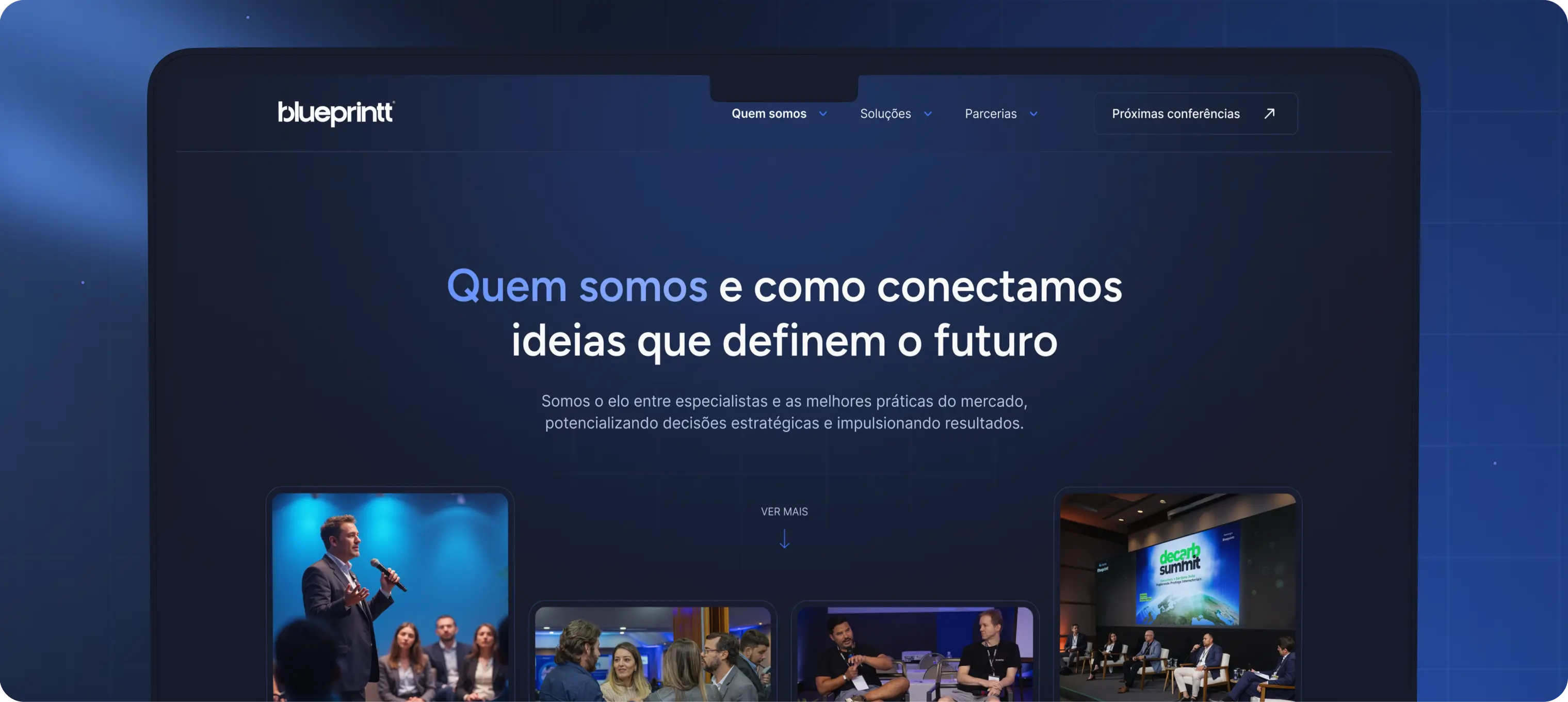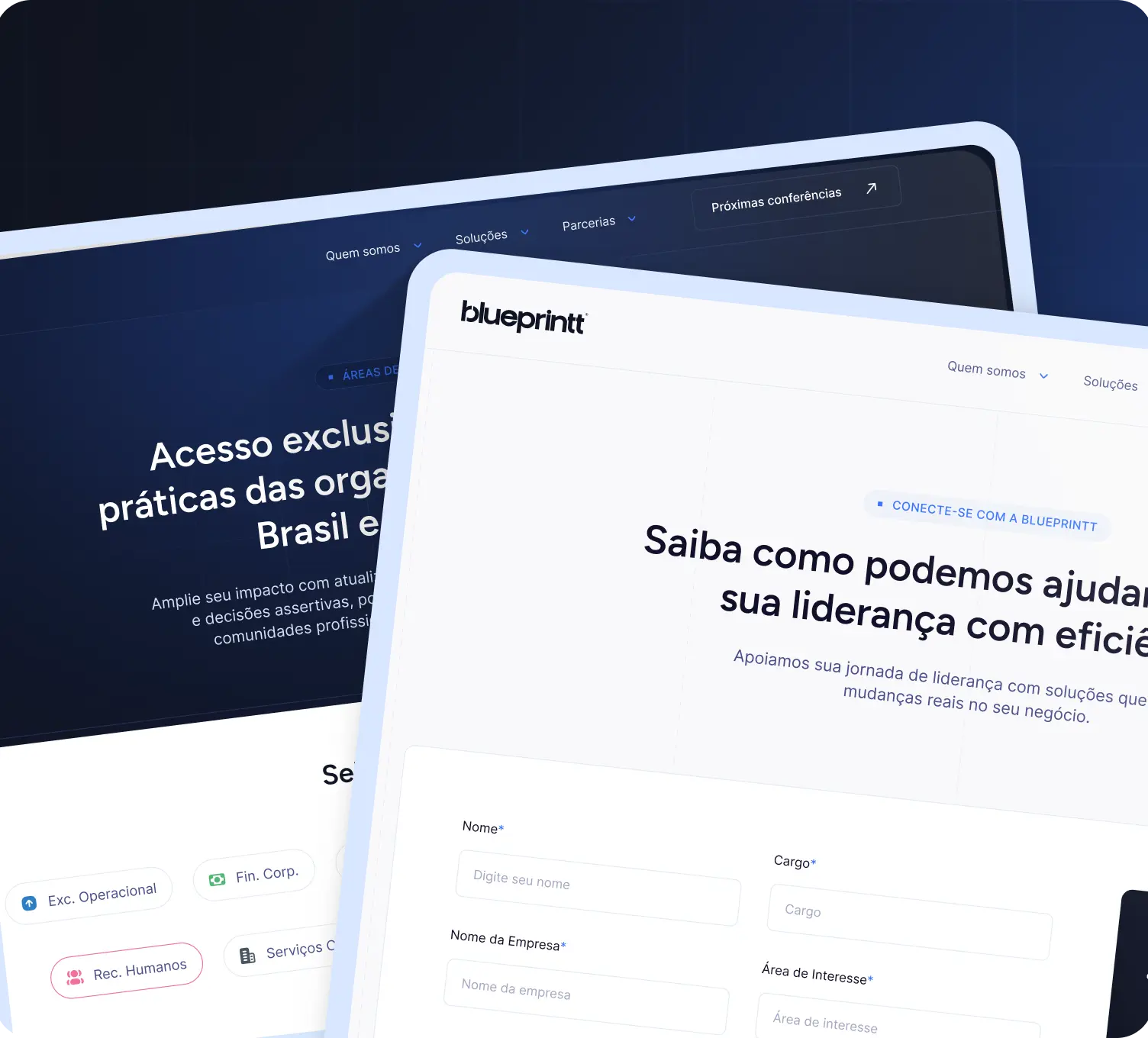 O novo site passou a expressar com mais clareza o posicionamento da Blueprintt como referência em melhores práticas para grandes organizações. A experiência foi estruturada para evidenciar a profundidade dos conteúdos, fortalecer a credibilidade da marca e facilitar o acesso às conferências e novas publicações. Com uma presença digital mais clara, sofisticada e estratégica, a Blueprintt ampliou sua capacidade de atrair líderes e gerar novas oportunidades de relacionamento e negócio.