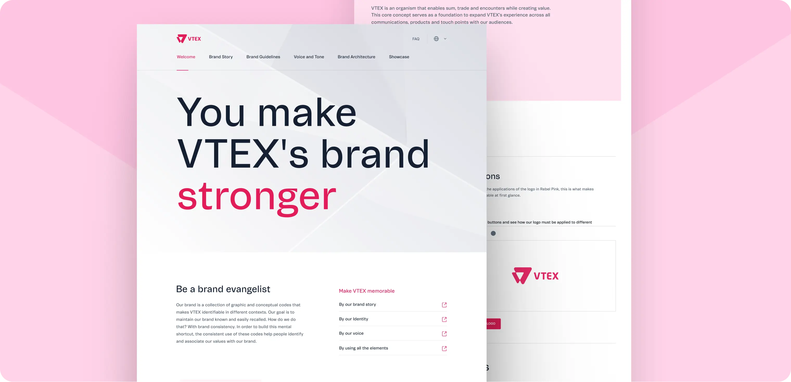 A VTEX é uma plataforma de e-commerce B2B e B2C que atende grandes marcas em diferentes mercados, oferecendo um ecossistema completo para operações digitais em escala. Com múltiplos times e parceiros distribuídos globalmente, a empresa necessitava de um site dedicado ao Brand Guidelines para centralizar diretrizes de cor, tipografia, tom de voz e aplicações visuais, garantindo alinhamento e consistência na comunicação da marca.